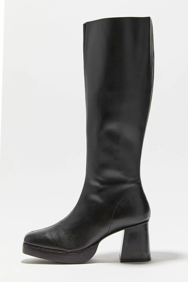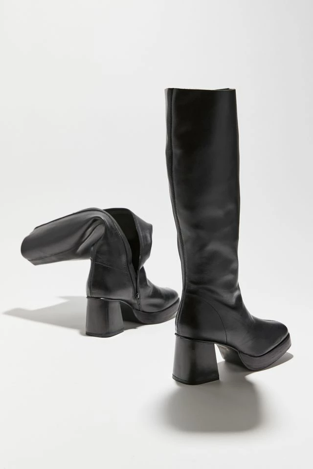 Knee-high boots from UO crafted from soft leather. Sleek silhouette with a side-zip closure. Finished with a platform sole and chunky square heel. Only at UO.