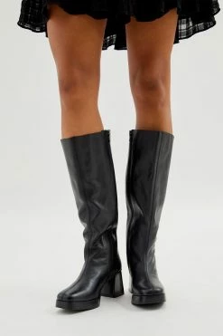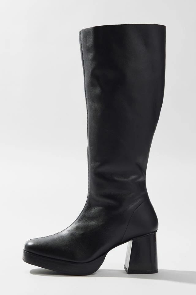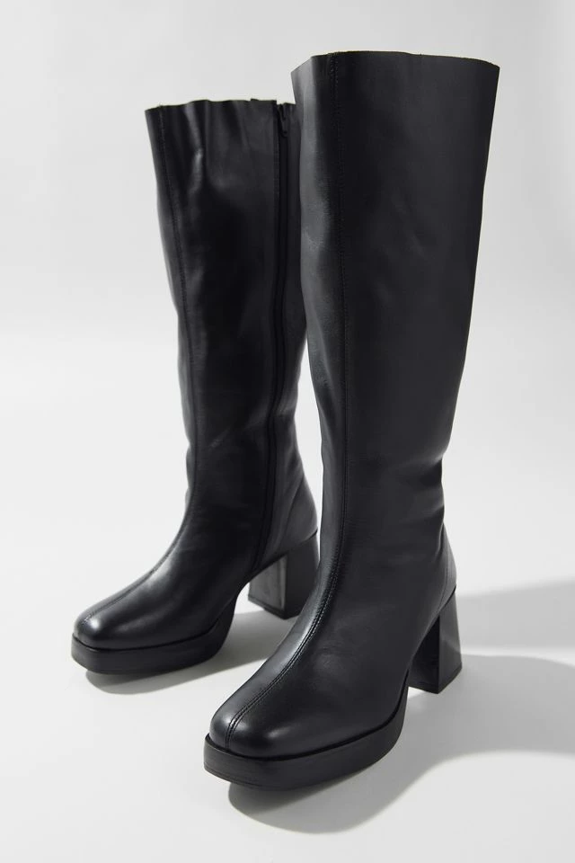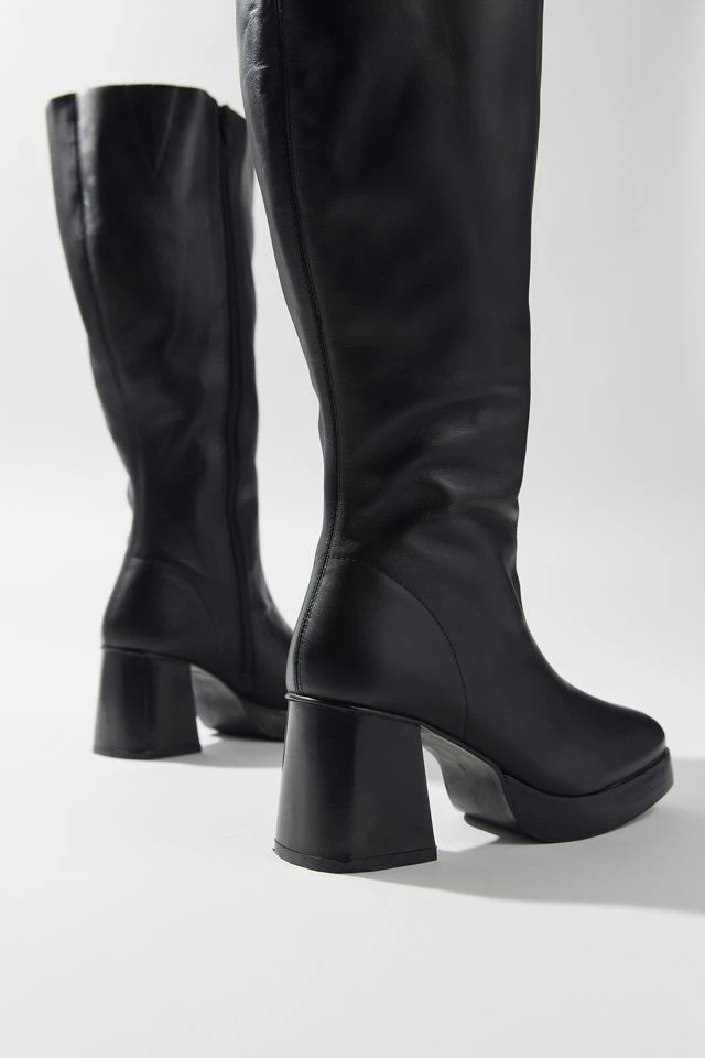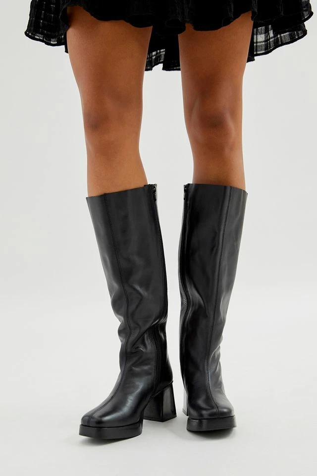 Knee-high boots from UO crafted from soft leather. Sleek silhouette with a side-zip closure. Finished with a platform sole and chunky square heel. Only at UO.