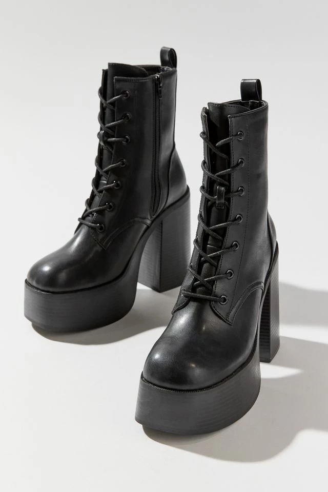 Be the supreme queen in the Noreen boots by Urban Outfitters, a retro-inspired shoe with serious ‘70s attitude. Designed with a super-chunky platform heel and 7-eye lace-up front. Includes an inner zipper and heel tabs for easy entry.