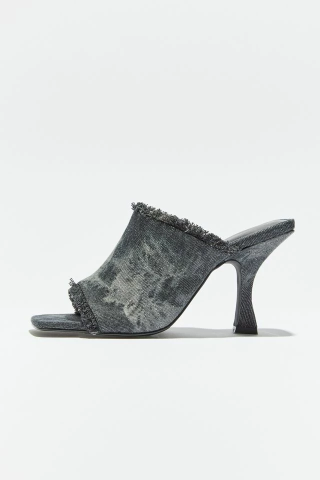 Open-toe mule sandal lifted by a flared heel, squared toe and distressed canvas upper. Exclusively available at Urban Outfitters.