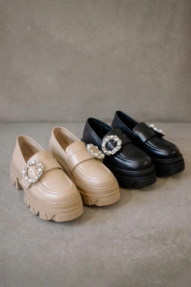 With their classic charm and a dose of sparkle, these chunky loafers will forever have a special place in our fashionable hearts. They are made from leather, topped with a crystal buckle and set on cleated rubber soles that feel a touch more modern than your traditional moccasin style. Take cues from our favorite ALOHAS chicas and wear your Trailblazer with wide-leg pants and glitter socks in plain view.