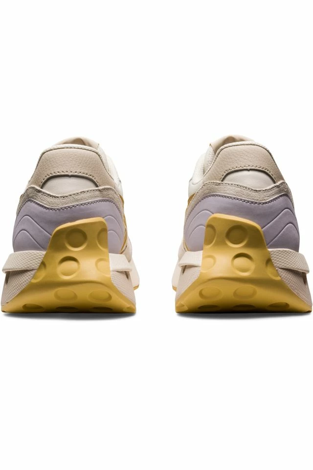 The JOGGER X81™ sneaker draws inspiration from various jogging shoes in the ASICS archive. The design pays homage to Japan’s thorough recycling processes that helps the country maintain a clean environment. It features recycled paper, synthetic leather, and polyester to conserve resources for the good of the planet. We took inspiration from the ULTIMATE shoe’s cushioning structure. By updating this technology with larger holes on the outside and smaller holes on the inside, the shoe offers better cushioning and stability. Meanwhile, the Caldera outsole design references the shape formed by Hawaiian volcanoes after they erupt and collapse. This unique design was initially intended to help prevent soil from getting stuck in the tread when running off-road.