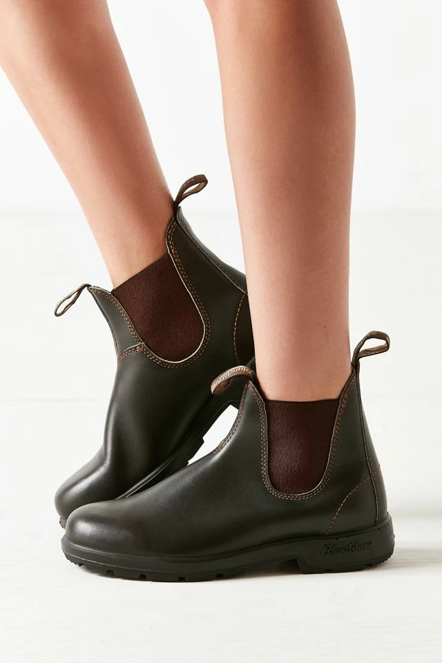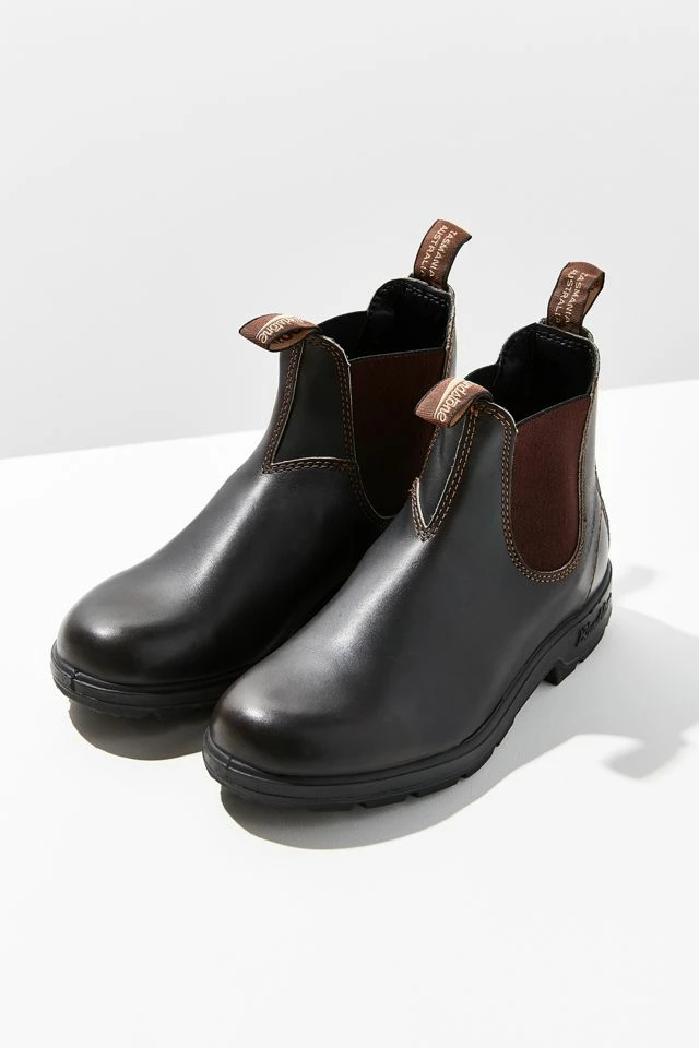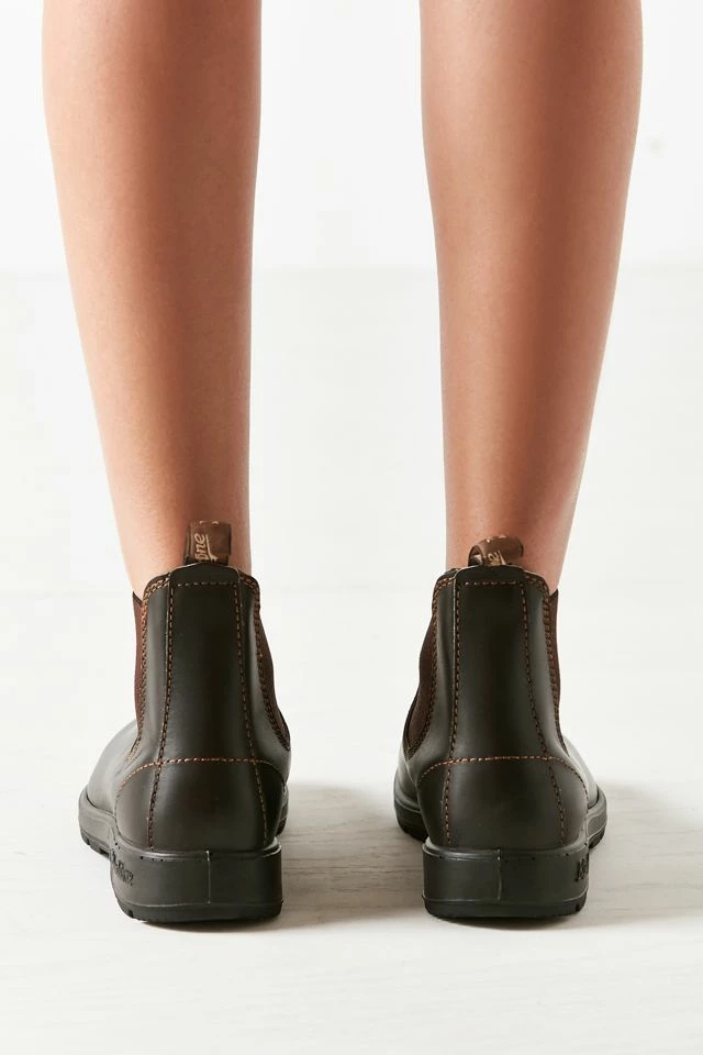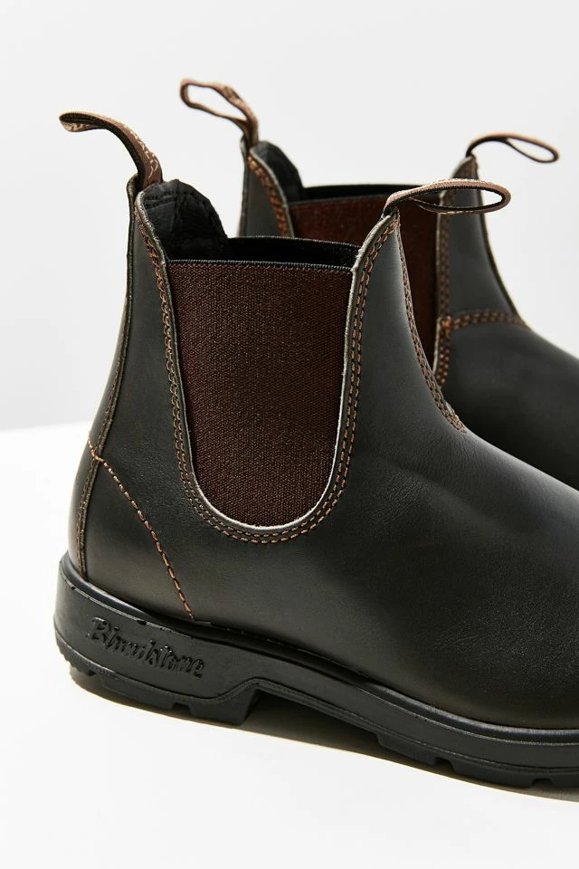 Classic chelsea boot from Blundstone. V-cut premium leather upper features two branded pull tabs and stretchy elastic gores for an easy entry. Hit the streets with all day comfort thanks to the removable molded footbed and ergonomically engineered toe spring. Cushy rubber midsole + heat-resistant TPU outsole offer a steady no-slip grip.