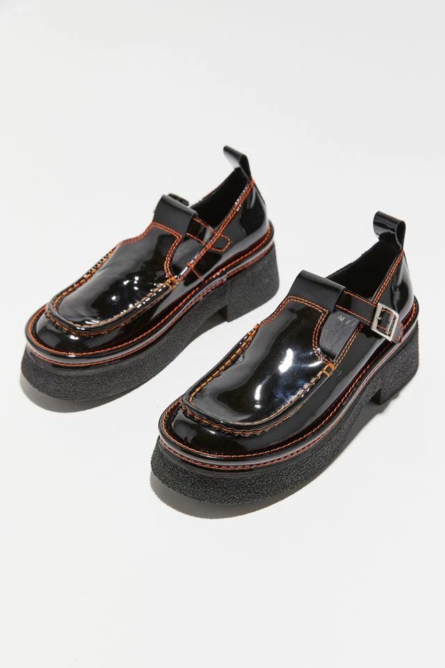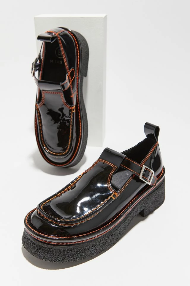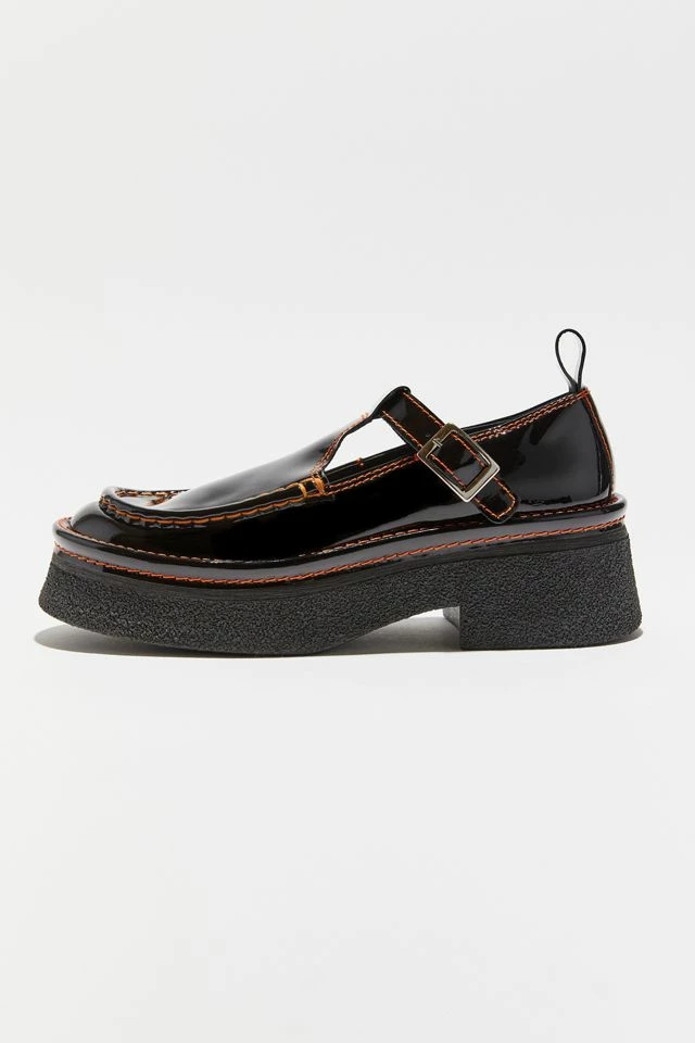 Vintage meets modern with these t-strap Mary Janes from E8 By Miista. Premium leather uppers with an adjustable buckle strap. Set atop chunky platform soles in crepe leather.