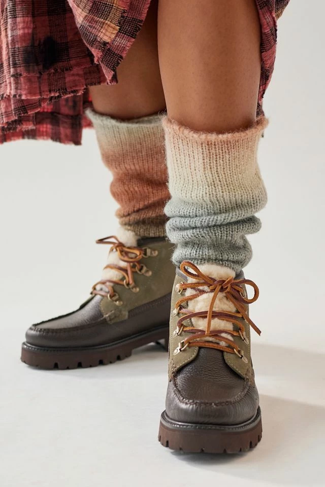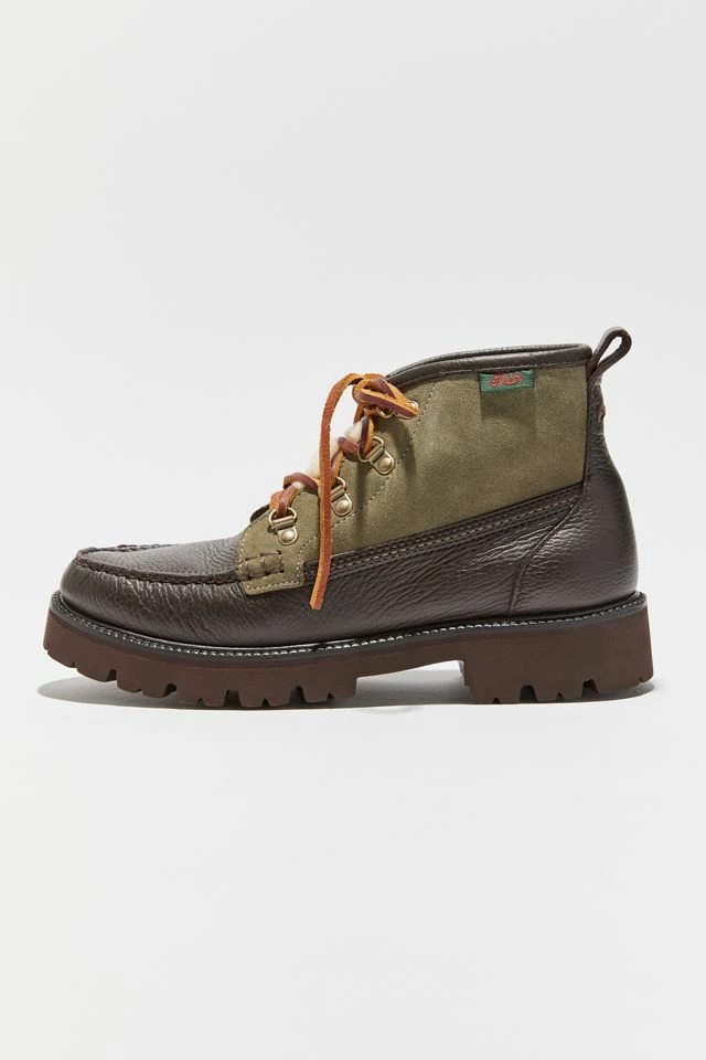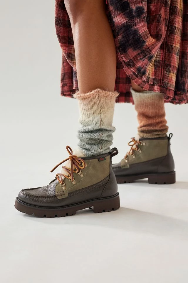 Essential lace-up leather boots from G.H. Bass in a mix of premium leather and suede. Moc-toe silhouette hand-sewn with a lace-up leather outer lined with ultra-cozy shearling for a warm feel. Set on a rugged lug sole made comfy with the Extralight EVA Outsole.