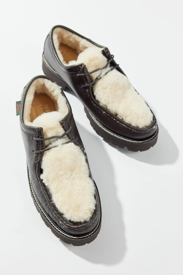 Chunky leather loafers from G.H. Bass with soft shearling fleece at the laced upper. Finished with stompy lug soles.