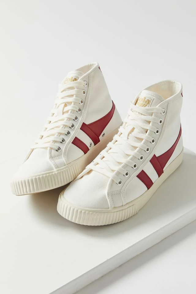 Based on the Gola heritage style from 1975 worn by tennis pro Mark Cox, Tennis High embraces Gola’s long history with racquet sports. This women’s demi-boot plimsoll is a quirky twist on the classic, featuring all the original branding callouts on an off-white canvas upper with a color heel tab and Gola wingflash.