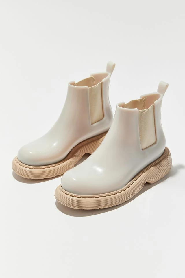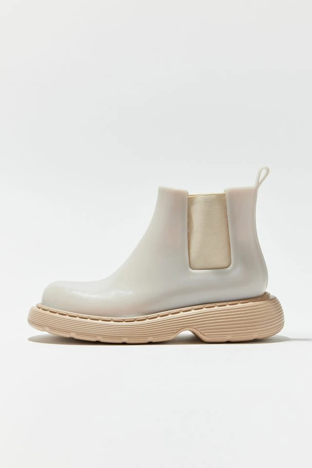 A fashion-forward, weather-ready boot that’s a step ahead of the rest. This ankle-height platform Chelsea boot withstands rain, mud, sand and dirt, all while remaining cute and chic, crafted from 100% vegan-certified, bubblegum-scented MELFLEX plastic that’s durable, flexible and hypoallergenic. Finished with elasticated sides, a dry, cushioned insole and tonal outsole.
