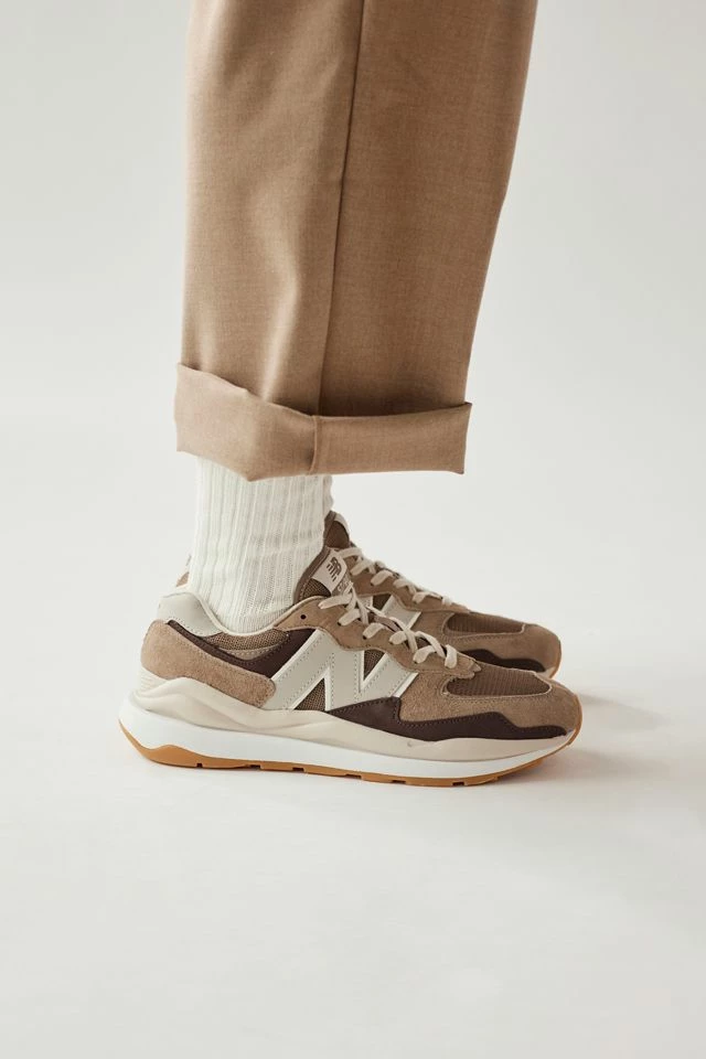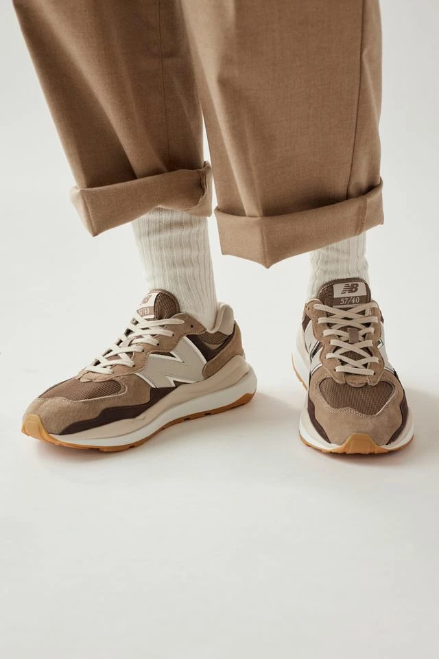 The 57/40 approaches 574’s hybrid concept with new design developments and perspective on an iconic design – an overall sleeker silhouette provided by a slimmer last combines with a range of exaggerated features. The unique midsole combines a flared take on the classic 574 construction with ‘90s tech-inspired details, while the mudguard and eyerow feature the distinctive wavy embellishments of the ‘80s.