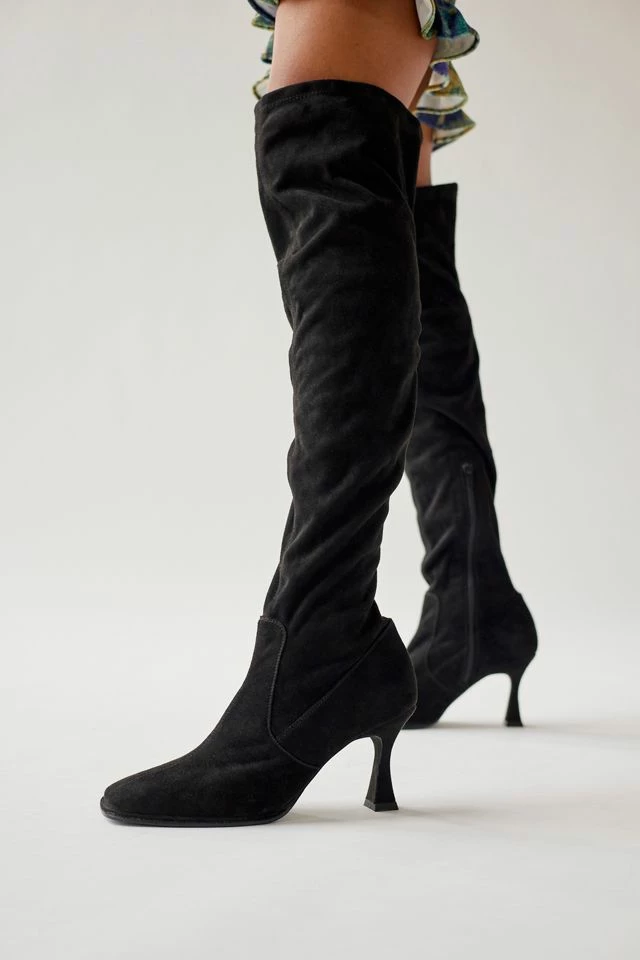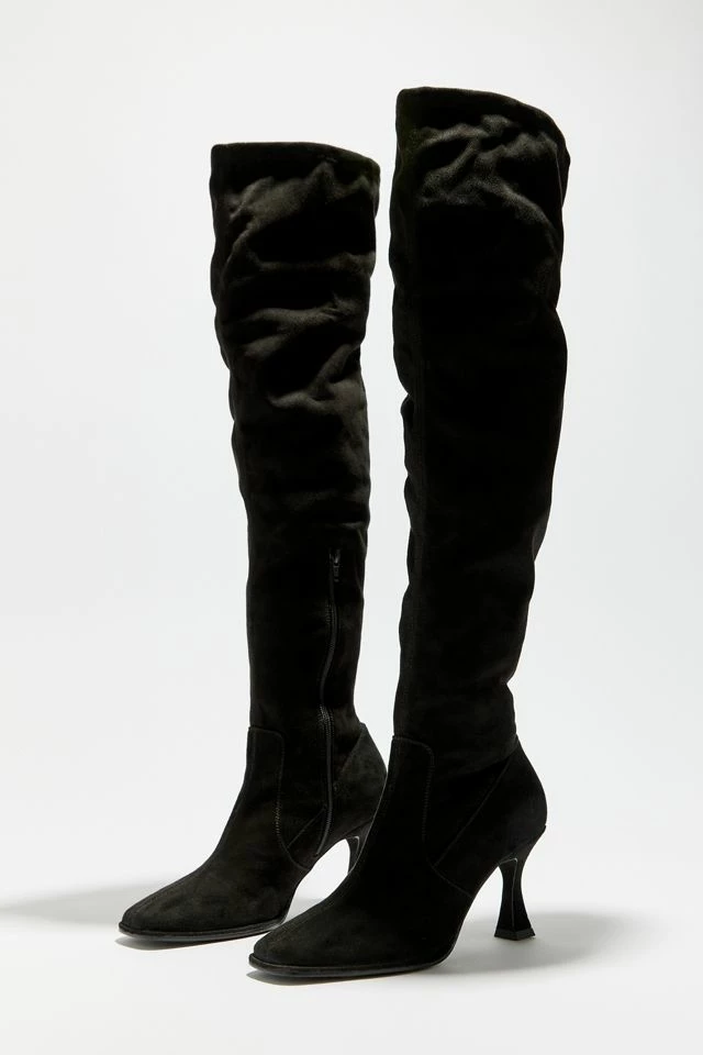 Extra-tall over-the-knee boots from Seychelles with a soft suede feel. Fitted silhouette with a subtle slouch finish. Zipped at the side with a pointed toe and high heel.