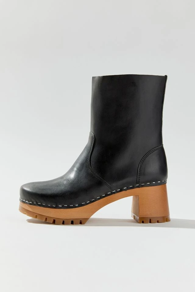 Basic leather boot handcrafted of chrome-free, vegetable-tanned Italian leather with a lime tree wooden heel and sole stitch. Due to its natural nature, the hardwearing leather will soften and stretch with wear, aging beautifully over time.