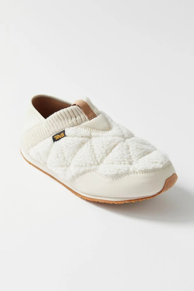 Part slipper, part sneaker, part sleeping bag for your feet, these comfy slip-ons from Teva easily handle campsites and long travel. The recycled poly fleece upper with a knitted collar provides cozy warmth, while the collapsible heel offers easy on-off and a laidback feel. With a responsive polyurethane footbed and recycled Regrind rubber outsole. Finished with topically applied water-repellency and Aegis® antimicrobial treatment.