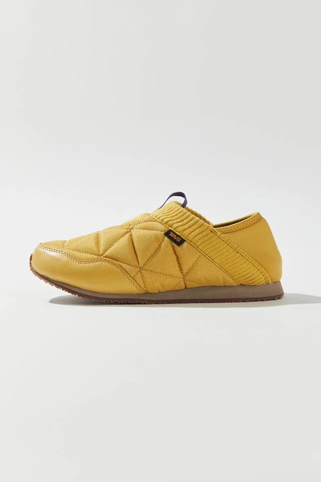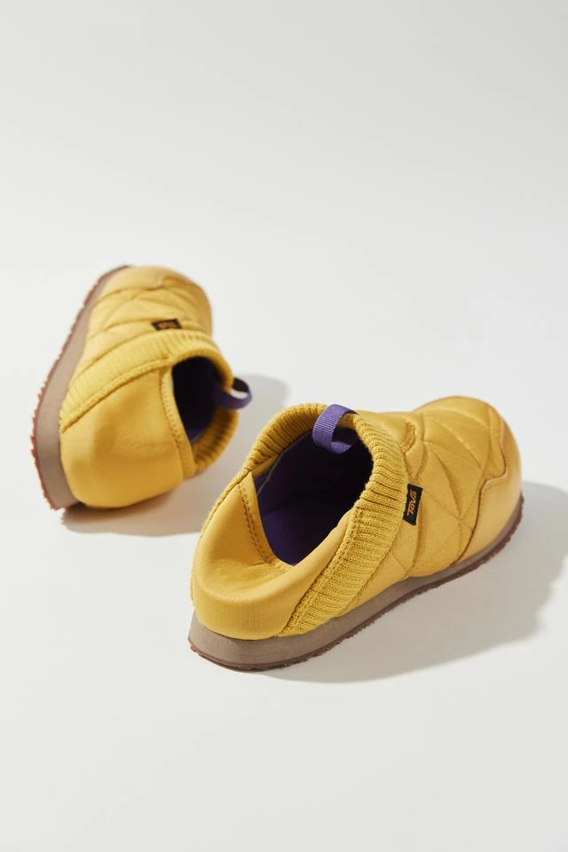 Part slipper, part sneaker, part sleeping bag for your feet, these comfy, quilted slip-ons from Teva easily handle campsites and long travel while remaining earth-friendly. The recycled ripstop upper with TevaRAPID RESIST technology provides protection against spills and stains, while the recycled rib knit collar and microfiber lining provide cozy warmth. The collapsible heel offers easy on-off and a laidback feel, with a responsive polyurethane footbed and recycled Regrind rubber outsole. Added Aegis® antimicrobial treatment keeps smells at bay.
