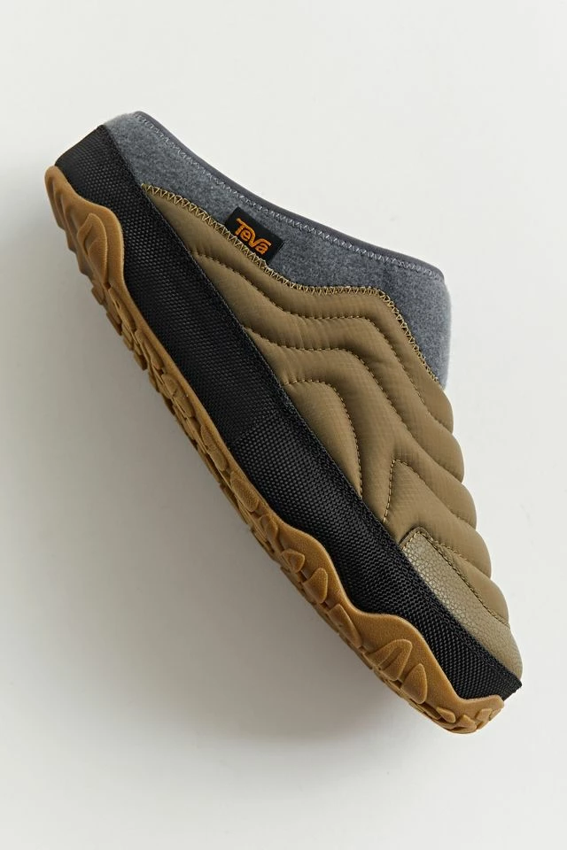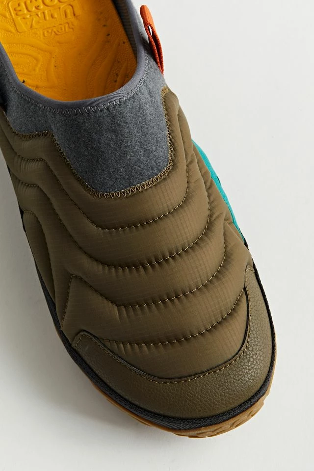 All-terrain sole ReEMBER slip-on shoe by Teva. Quilted upper in a slip-on clog silhouette with a pull tab at the inner foot.