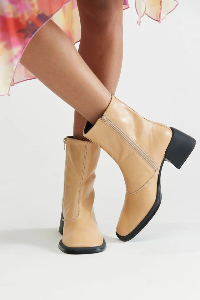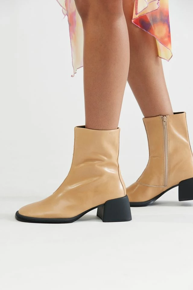 Heeled boots from Vagabond Shoemakers in a vintage-inspired silhouette. Minimal detailing includes a square toe and an angular block heel. Zip closure at the side.