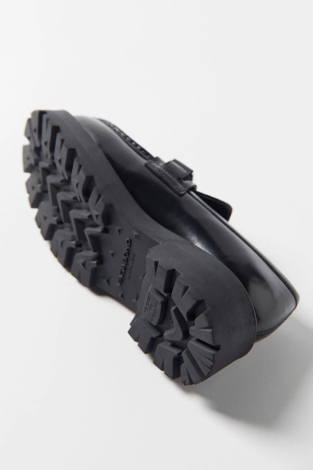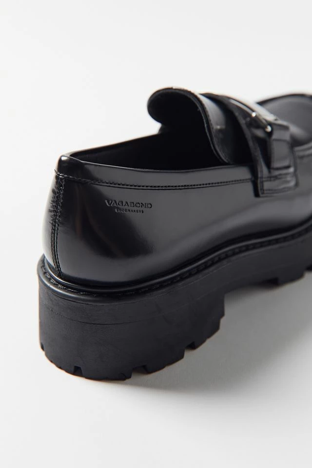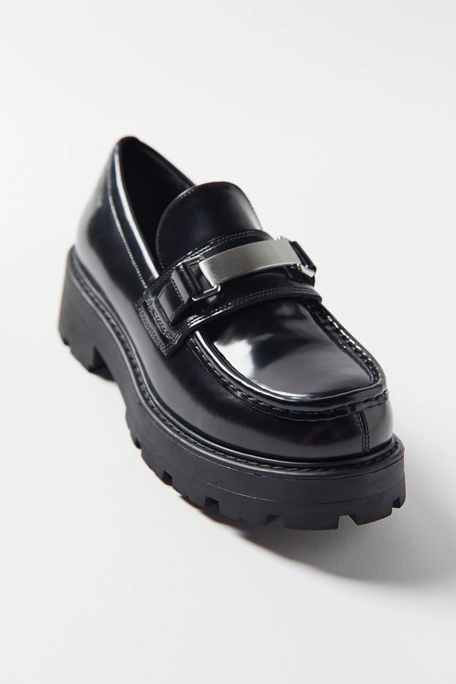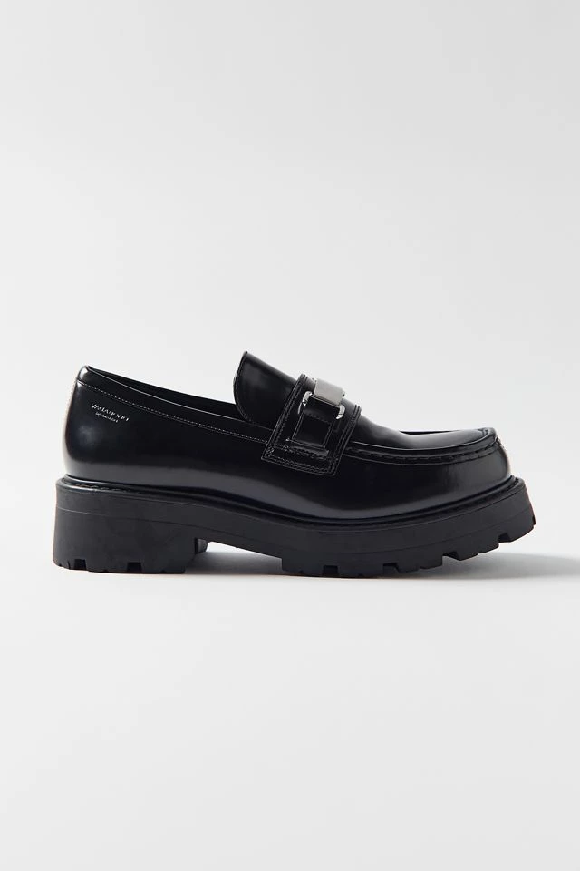 Cosmo 2.0 is a chunky penny loafer with a robust silhouette and silver metal hardware. The style is crafted from polished leather with an apron toe, contoured straps and visible stitching across the upper. The solid rubber outsoles measure 45mm.