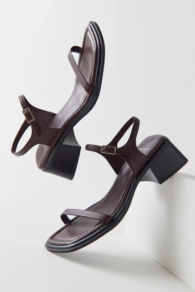 Ines is the modern mid-heel sandal with a pared-down aesthetic. The style is crafted in leather with thin leather straps, an adjustable ankle buckle and subtle square toes. The style sets on thin outsoles and 53mm flared heels.
