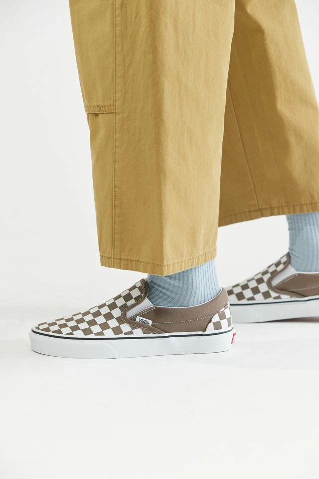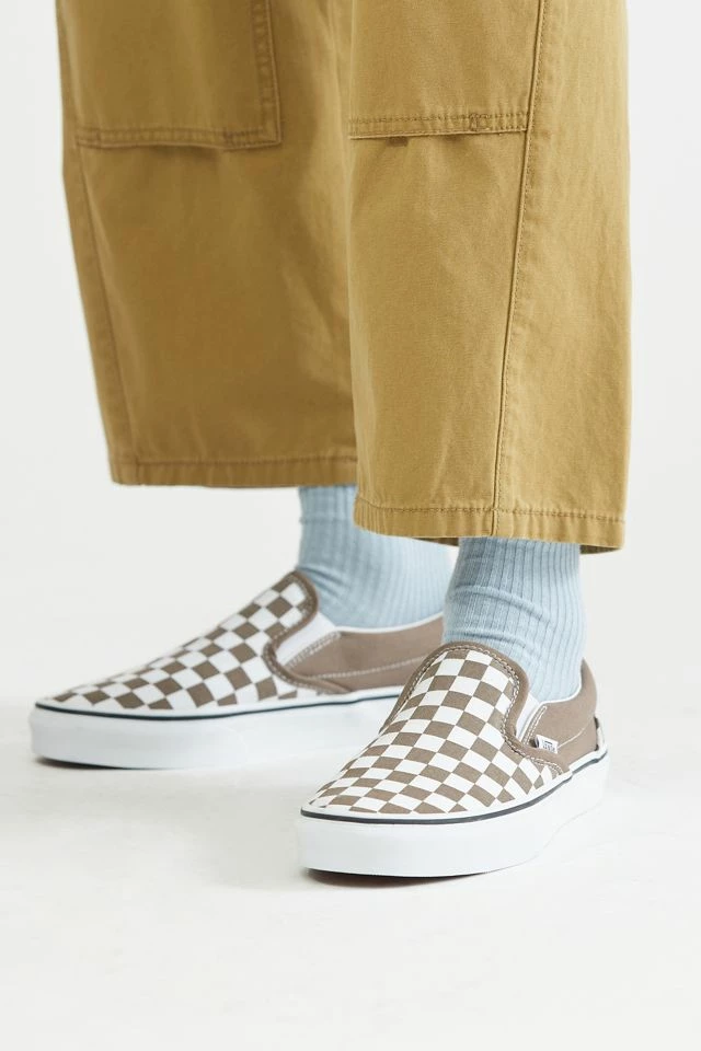 First introduced in 1977, the Vans #98 – now known as the Classic Slip-On – instantly became an icon in Southern California. Featuring the iconic Vans checkerboard print, the Classic Slip-On is an everyday essential with true “Off The Wall” style, known for its comfortable silhouette, easy wearability and beloved design. This slip-on shoe also includes low profile canvas uppers, supportive padded collars, elastic side accents and signature rubber waffle outsoles.